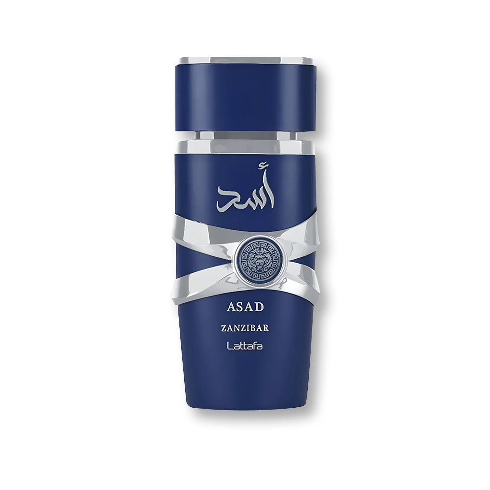 Asad Zanzibar es una fragancia exótica y refrescante para hombre, con un perfil aromático-marino que mezcla lavanda, coco e iris sobre un fondo cálido y envolvente de vainilla e incienso.