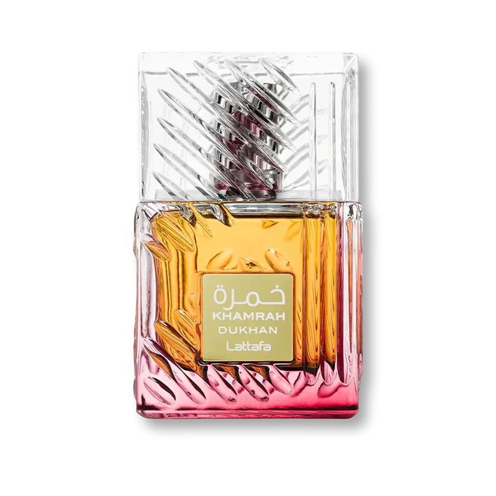 Khamrah Dukhan es una fragancia intensa y misteriosa para hombre, con un perfil especiado-oriental que mezcla mandarina, incienso y flor de azahar sobre un fondo cálido y adictivo de tabaco, praliné y ámbar.