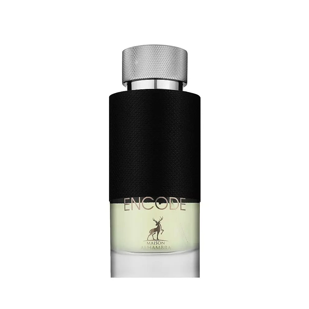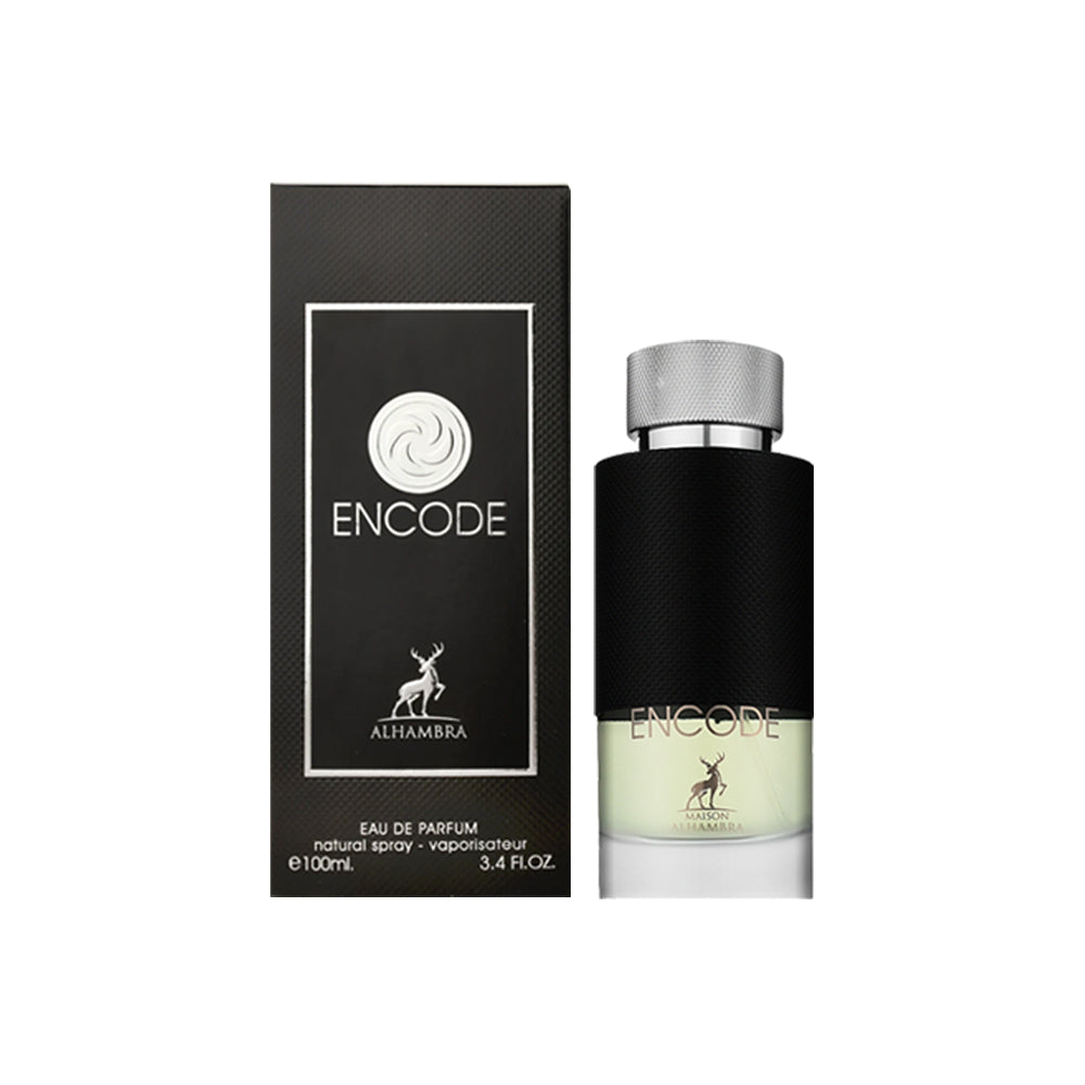 Encode es una fragancia moderna y sofisticada para hombre, con un perfil especiado-amaderado que mezcla bergamota, cuero y vetiver sobre un fondo cálido de ambroxan, cacao y pachulí.
