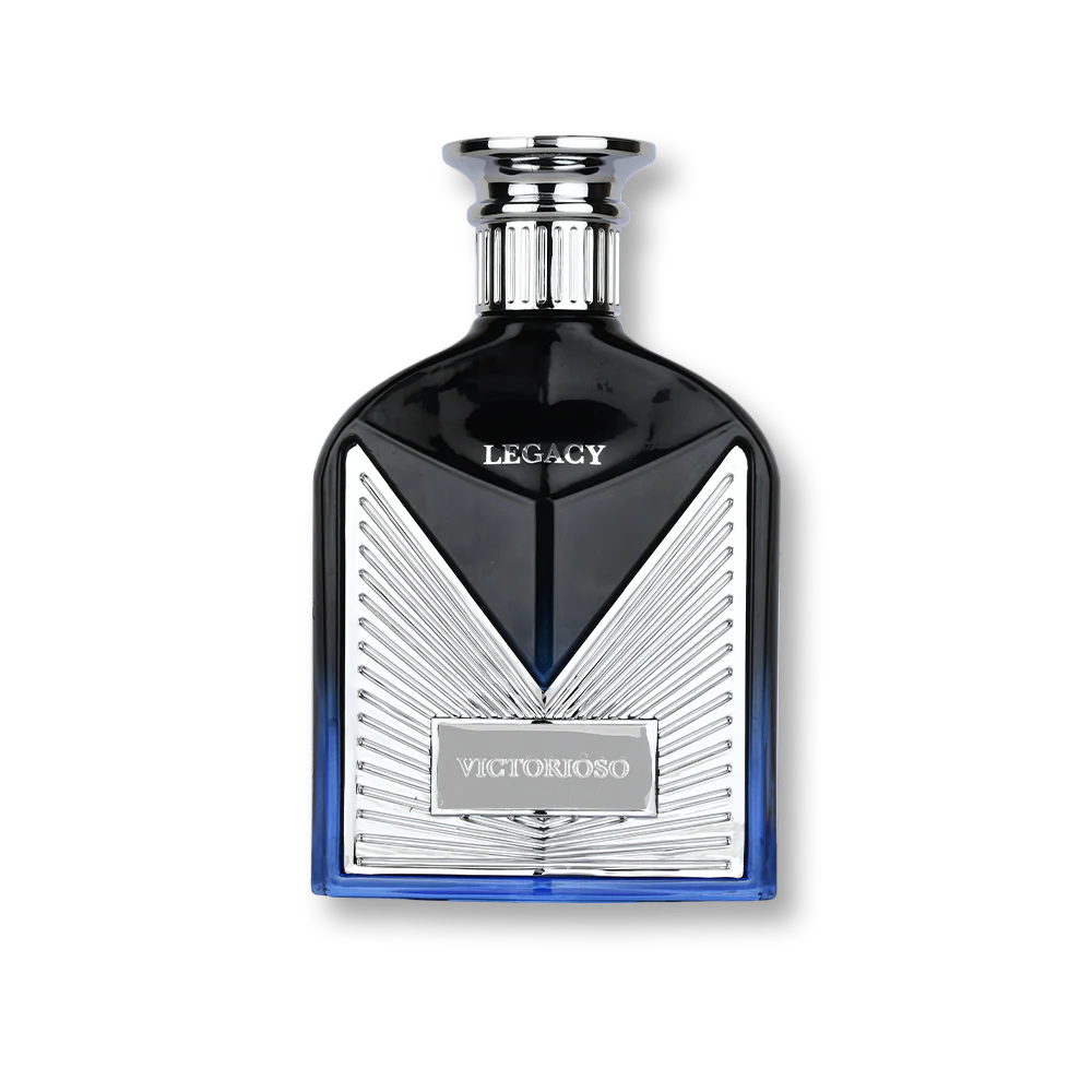 Victorioso Legacy es una fragancia intensa y sofisticada para hombre, con un perfil aromático-floral que combina incienso, pimienta rosa y lavanda sobre un corazón refinado de geranio, jazmín y violeta, asentado en un fondo cálido y sensual de cachemira, ámbar gris y sándalo.