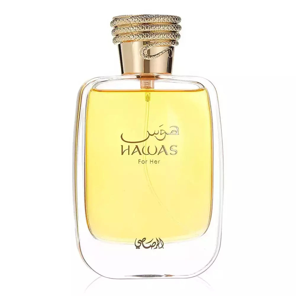 Hawas for Her es un perfume sofisticado y femenino, con un perfil dulce-floral que mezcla granada, jazmín e iris sobre un fondo cálido de praliné, pachulí y vetiver para un aroma elegante que destaca en cualquier ocasión.