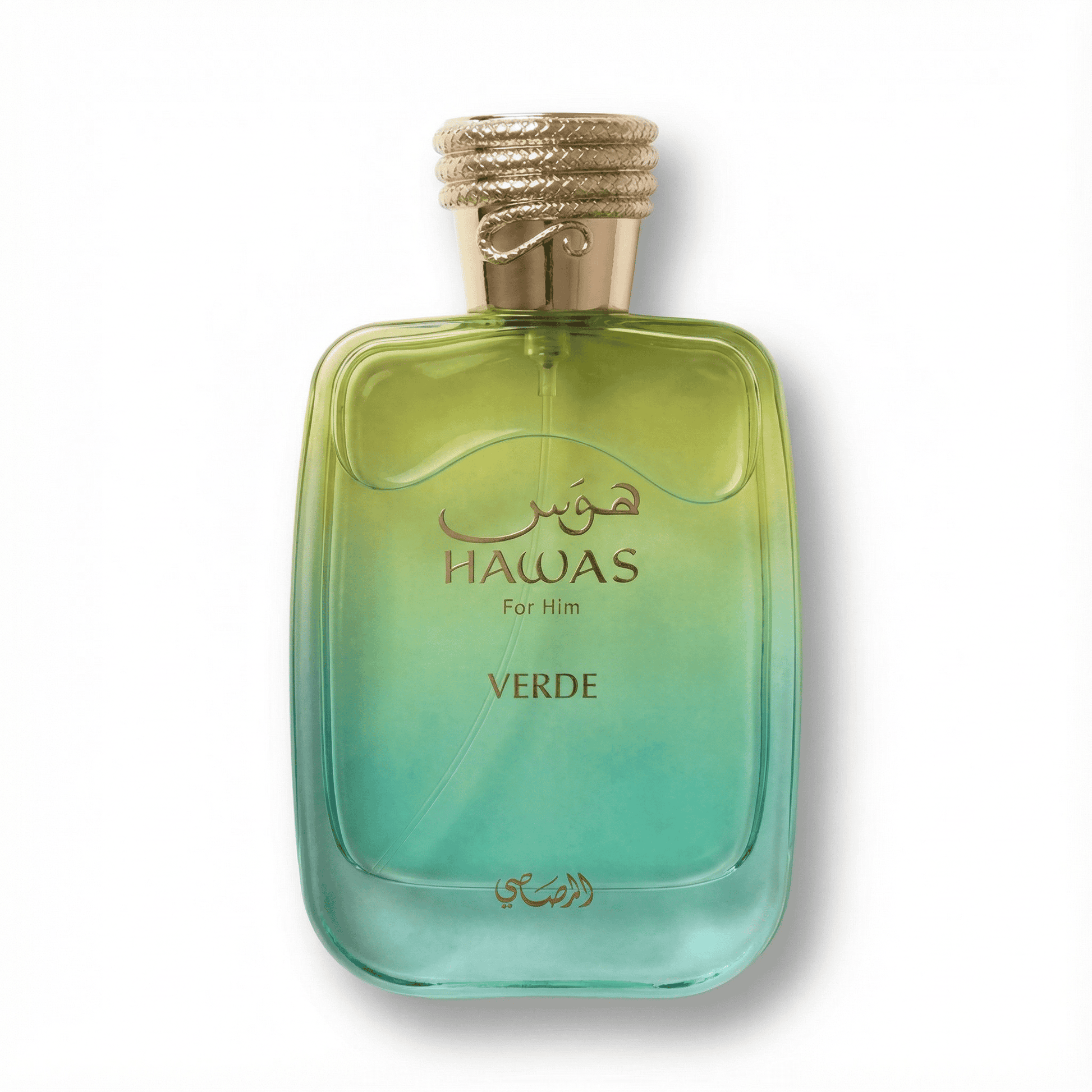 Hawas Verde es una fragancia masculina vibrante y fresca, que combina la energía efervescente de la lima y el romero con un corazón puro de manzana verde, para culminar en un fondo sofisticado y magnético de pachulí y ámbar que envuelve con masculinidad y un encanto natural y duradero.