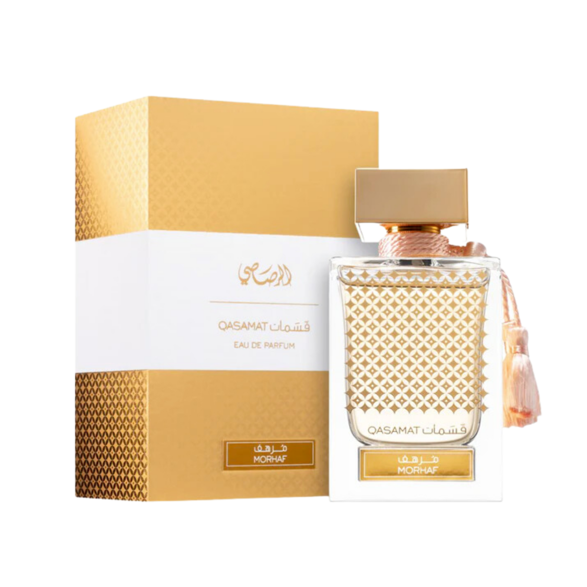 Qasamat Morhaf es una fragancia sofisticada que combina la frescura cítrica y afrutada con un corazón floral especiado, para finalmente reposar en un fondo cálido y profundo de maderas, ámbar y oud que le otorgan carácter y elegancia.