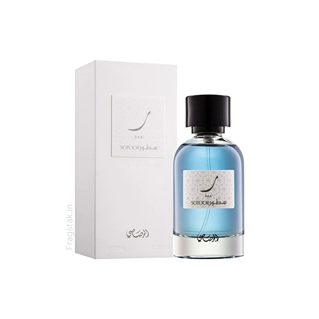 Sotoor Raa' es un perfume elegante y moderno para hombre, con un perfil fresco-floral que mezcla cítricos y jazmín sobre un fondo cálido de almizcle y pachulí para un aroma sofisticado que destaca en cualquier ocasión.
